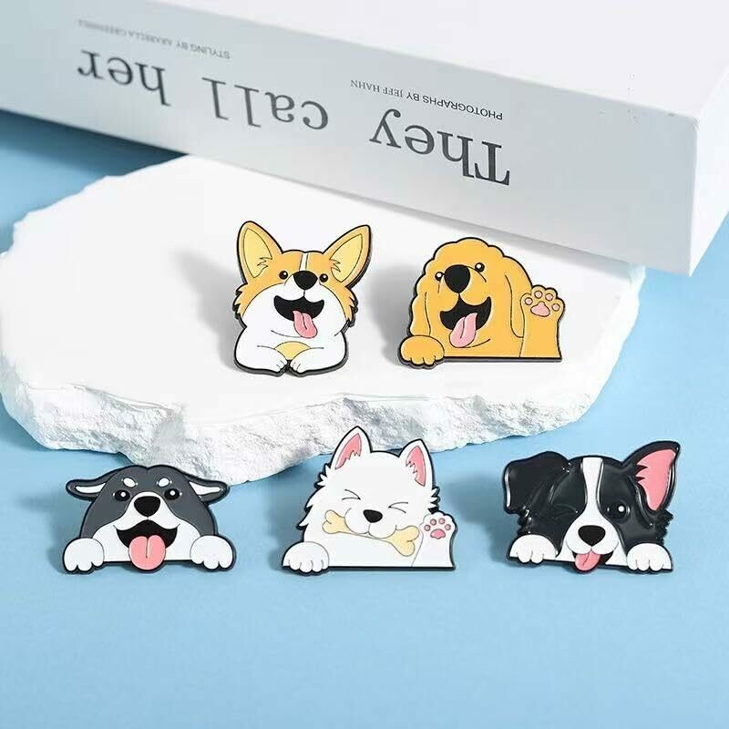 • 5pcs Dog Enamel Pins Set – Cute & Funny Pins