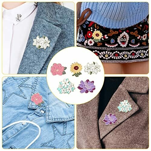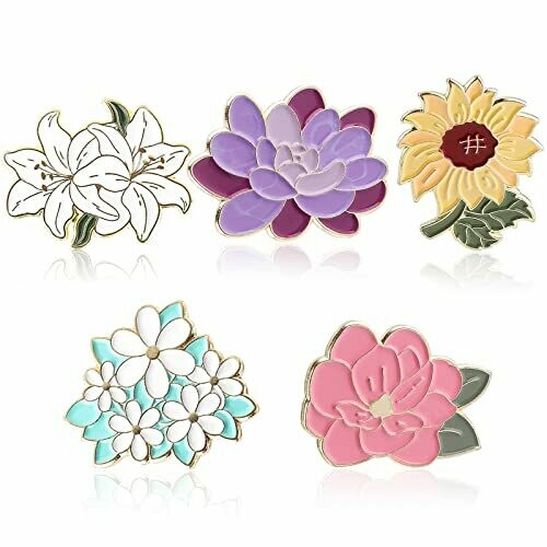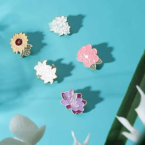 These flower enamel pins feature five unique designs, made of high-quality alloy with clear pattern printing. The set includes five different styles and sizes, perfect for adding a pop of color to backpacks or clothing. They make a great gift for any occasion.