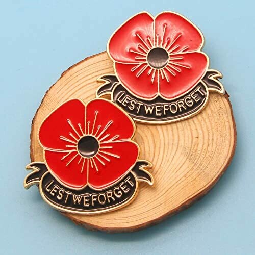• Memorial pin: An memorial remember poppy lapel pin lest we forget to be given to fathers or friends on Veterans Day/Remembrance Day/Memorial Day.