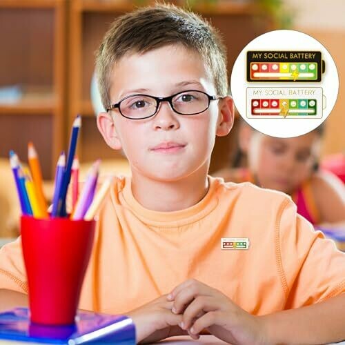 Funny brooch for social mood for 7 days, 2 pieces interactive mood pin, My Social Battery pin, functional aesthetic enamel pins brooch, mood expression pin for introverts.