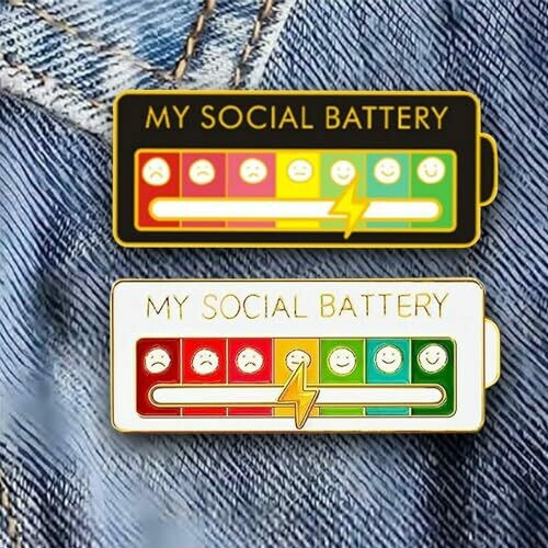 • Social Battery Pin, Pack of 2 Funny Brooches
