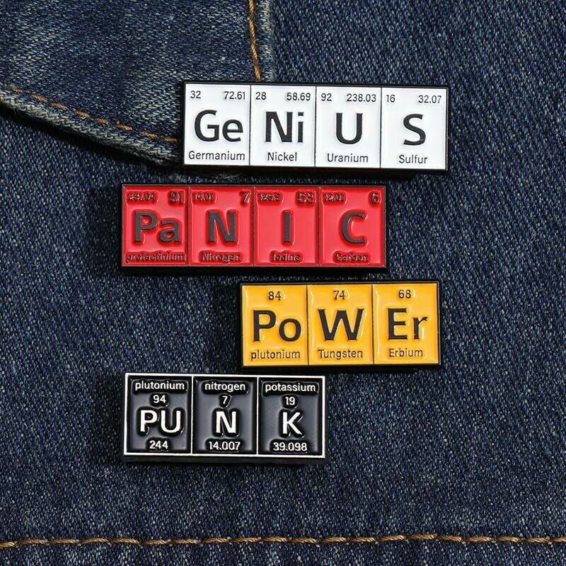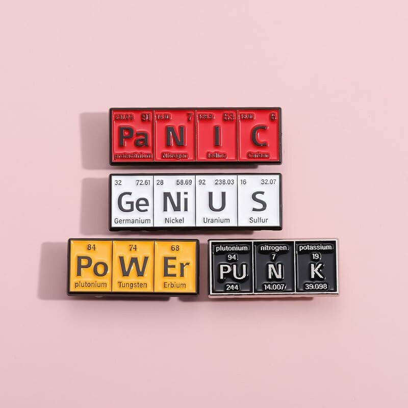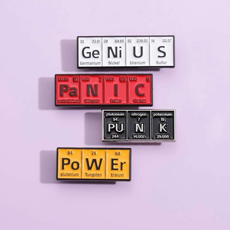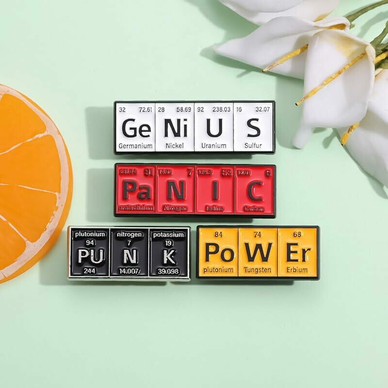 Enamel Lapel Pin Badges | Periodic Table Word Tile (GeNiUS | Periodic Table Word Tile Badge Pin)