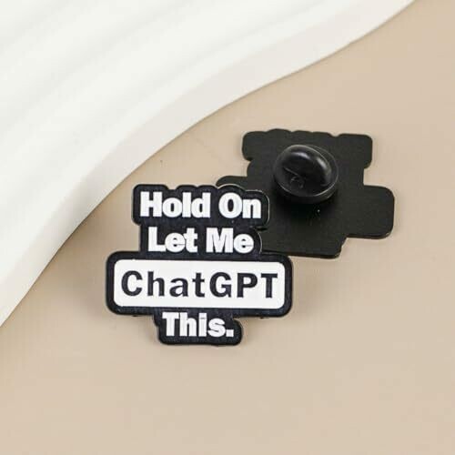 - Trendy design: Stylish black and white enamel pin featuring 'Hold On Let Me ChatGPT This' text, great for tech enthusiasts and digital humor lovers