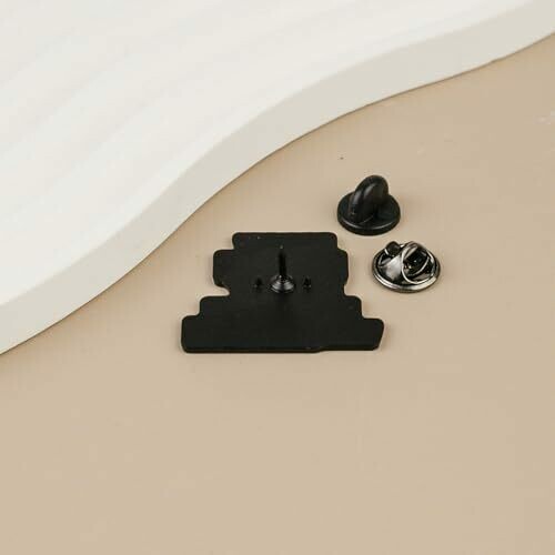 • Bold enamel pin featuring contrasting black and pink colors with text design and metallic accents for a striking visual statement