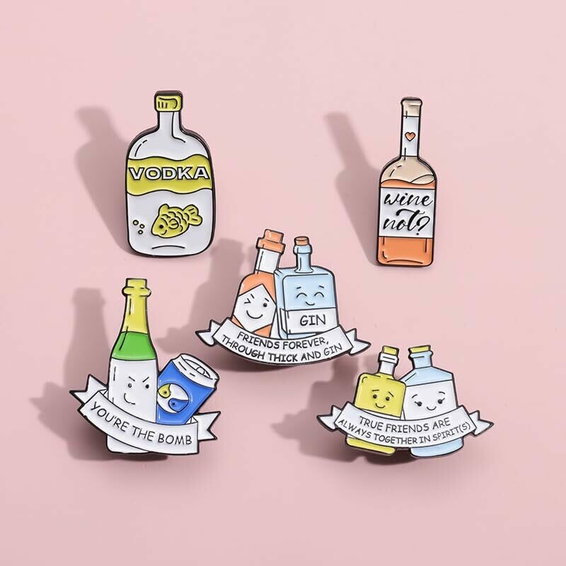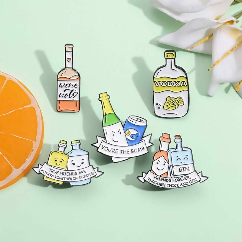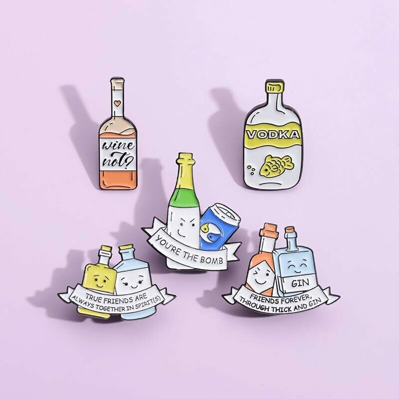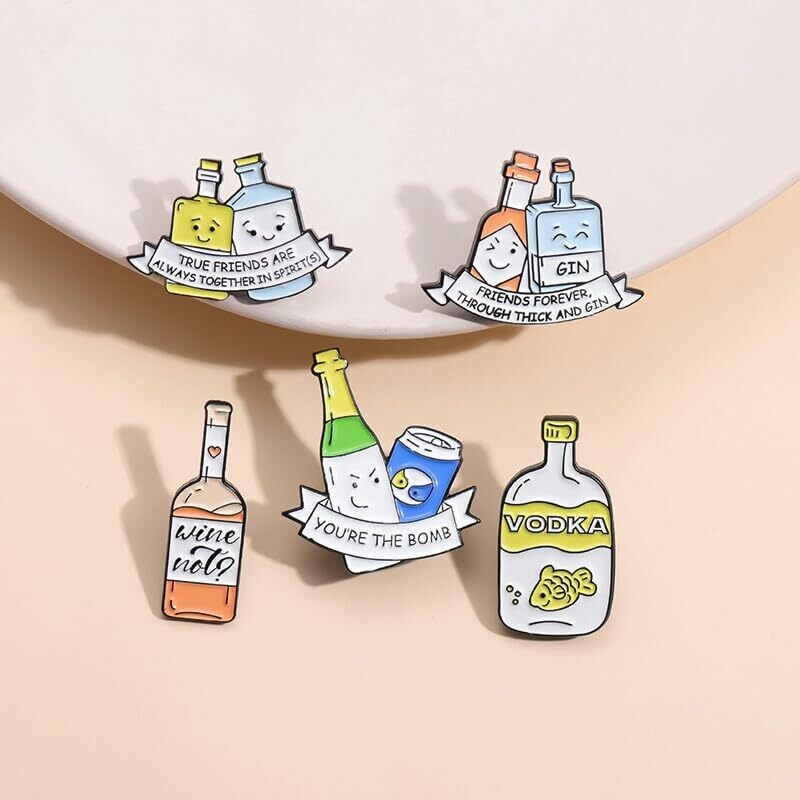 Add a touch of humor to your outfit with our alcohol-themed enamel pin badges. Choose from 5 variations featuring funny memes and quotes. Crafted with durable materials, these pins are built to last. Express your love for alcohol and share a laugh with others. Sizes vary (2.5cm x 2.5cm).