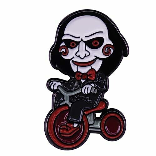 Show off your love for Saw with this 1.25 inch tall enamel pin. Made with high quality metal and enamel, it is brand new, boarded and bagged, and secured with a firm pinback. Perfect for any horror movie fan!