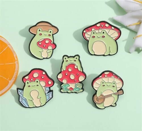 5pcs Cartoon Cute Mushroom Frog Enamel Pins