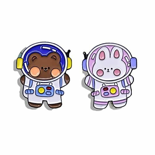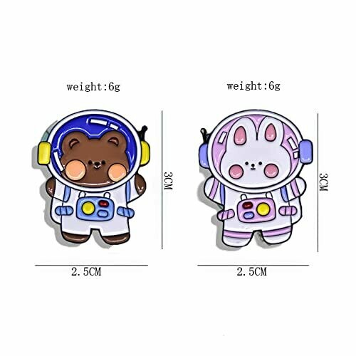 • Enamel pins set: You will get 2 pieces enamel pins, these pins consist space astronauts bear and a rabbit.
