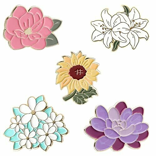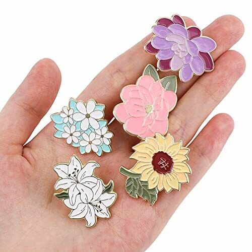 These flower enamel pins feature five unique designs, made of high-quality alloy with clear pattern printing. The set includes five different styles and sizes, perfect for adding a pop of color to backpacks or clothing. They make a great gift for any occasion.