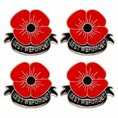 • These 4pcs Lest We Forget Poppy Flowers Brooches Pins are a perfect way to honor and remember those who have served.