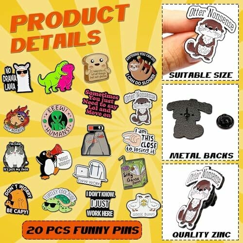 Sowpopy 20 Pcs Funny Enamel Pins Bulk