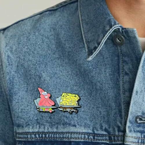 Add some laughter to your pin collection with this official SpongeBob Squarepants enamel pinset featuring SpongeBob and Patrick laughing in class. Manufactured by Zen Monkey Studios, these two soft enamel pins are the perfect addition to any SpongeBob fan's collection. SpongeBob measures 1.23 inches while Patrick measures 1.75 inches in height. Copyright Viacom International Inc. All Rights Reserved.